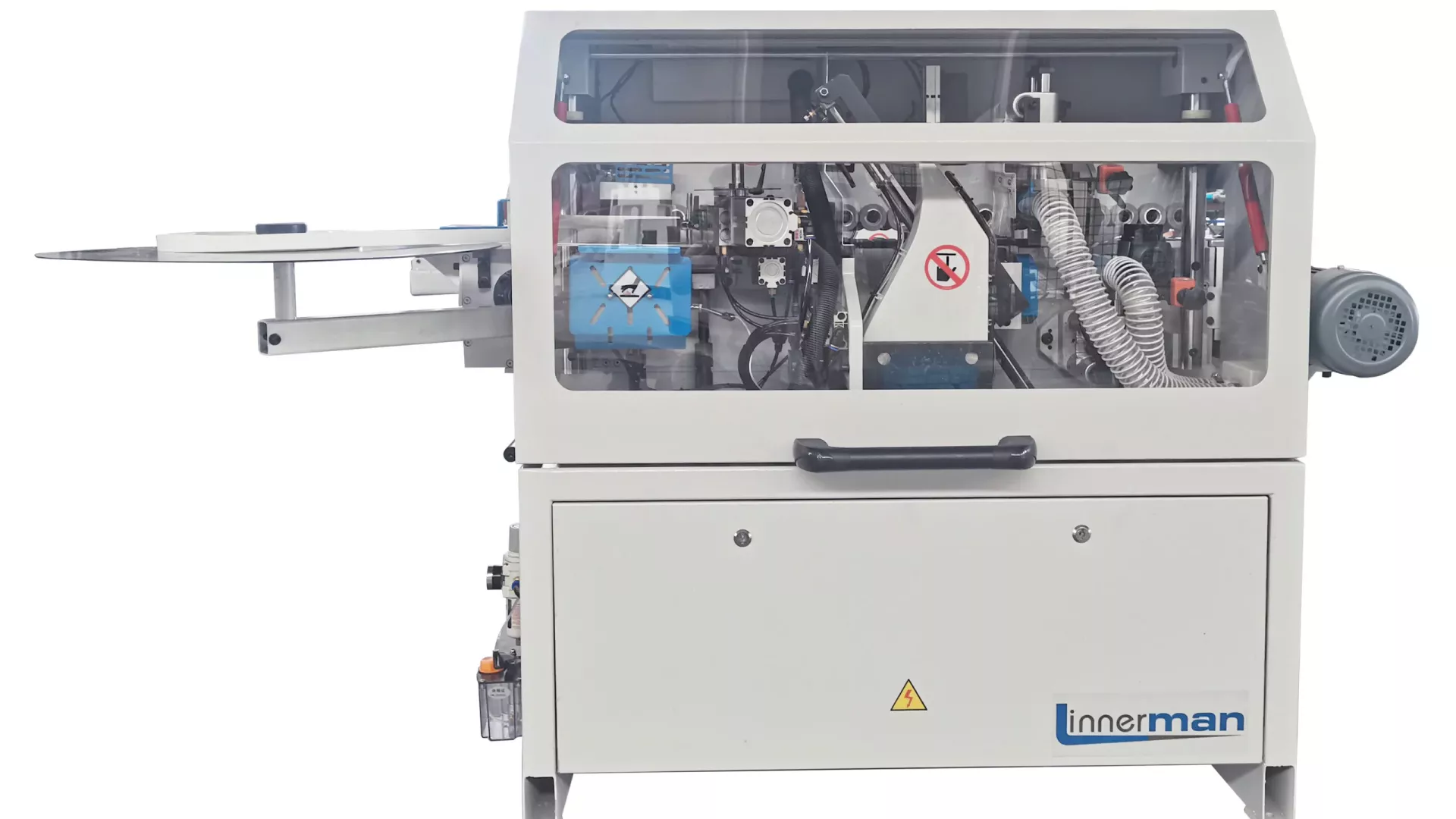 - Sistema de avance por cadena a 8 m/min de alta precisión con patines que se deslizan sobre una base guiada, asegurando un movimiento preciso y resistente sobre cualquier tipo de esfuerzo.