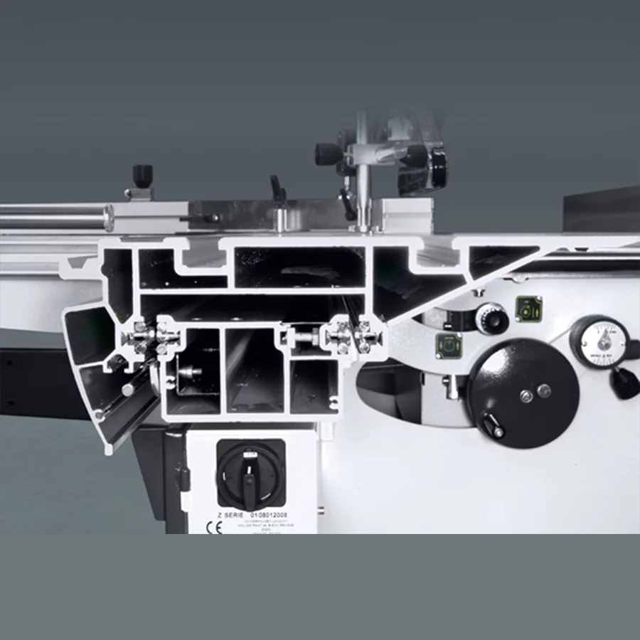 La escuadradora Robland Z-500×1 presenta un nuevo grupo de sierra fabricado en fundición de una sola pieza lo que le da una mayor robustez, precisión y estabilidad. Para una eficaz inclinación el grupo pivota sobre dos semicircunferencias fabricadas en fundición lo que garantiza una duración de por vida y un movimiento extremadamente suave.
