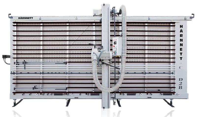 Dispone de parrilla móvil automática, mediante sistema neumático, para evitar dañar los listones de apoyo durante el corte horizontal. Apoyo inferior de los paneles sobre rodillos de aluminio, los tableros se desplazan de manera fluida y fácil.
