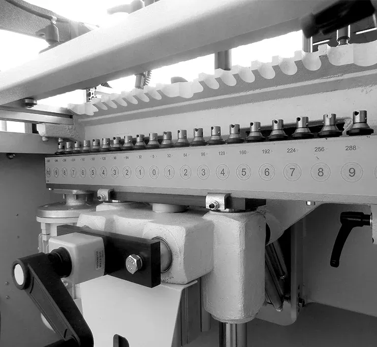 El equipo integra un cabezal con capacidad para 21 brocas, con una distancia de 32 mm entre cada taladro, lo que permite mecanizar múltiples agujeros de manera simultánea con una gran precisión.