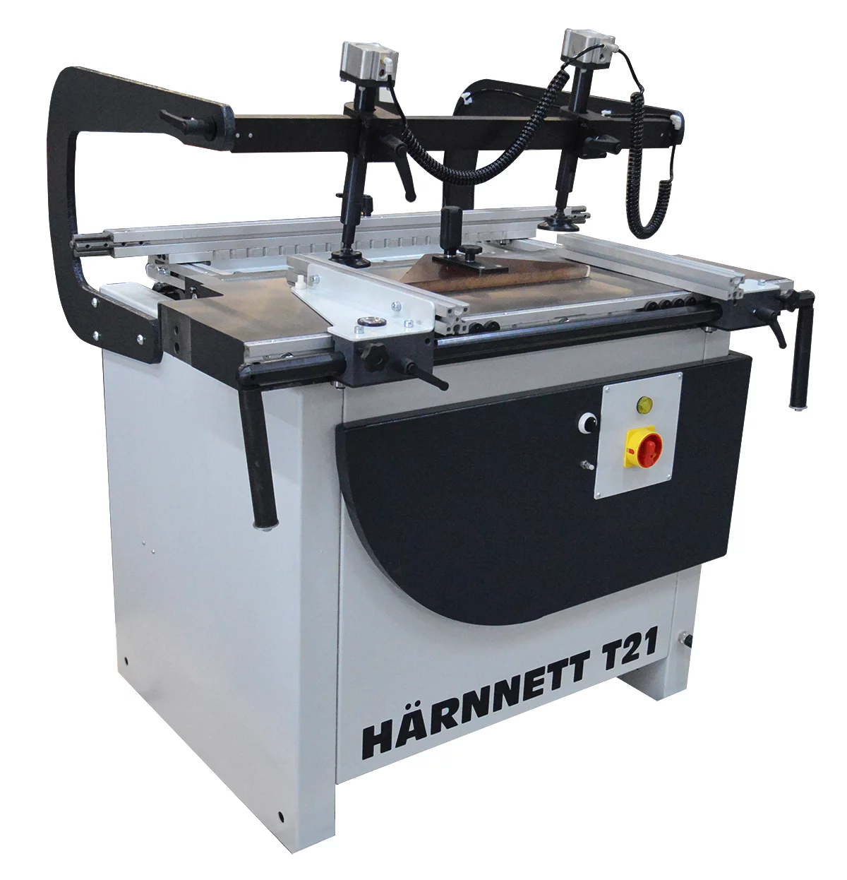 El nuevo modelo de taladro múltiple HÄRNNETT T21, con cabezal para 21 brocas y mesa de 800 x 425 mm, robusto chasis de acero electro-soldado y nuevo puente mucho más reforzado de gran escote le permitirá trabajar con piezas más anchas.
